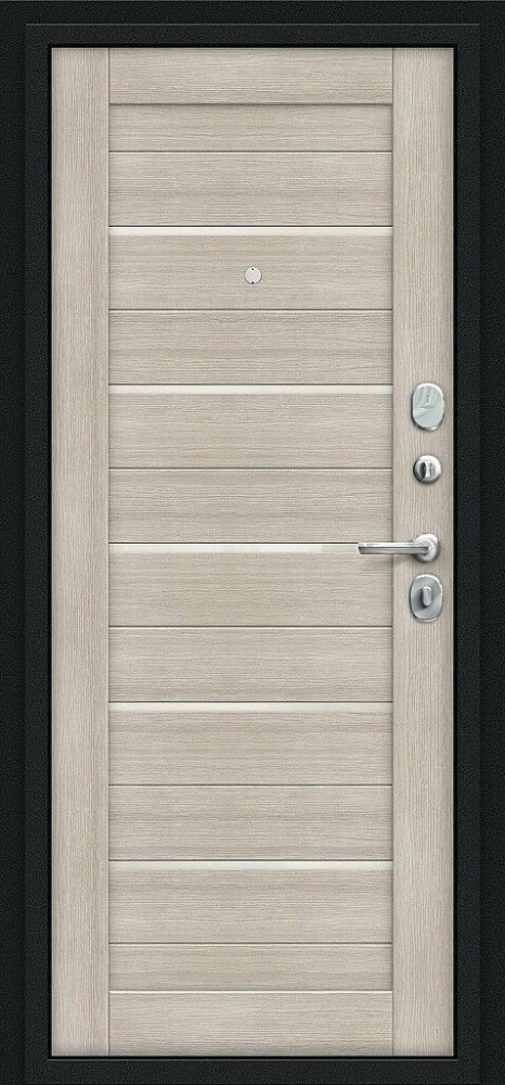 Надежная входная Браво Техно Kale Букле черное/Cappuccino Veralinga премиум класса по цене 36 217 руб. Большая толщина стали защитит от проникновения в ваш дом, квартиру или коттедж. Используется очень качественная фурнитура: замки, цилиндры, ручки, защелки. Покрытие и отделка двери изготовлено под внимательным контролем производителя. Дверь имеет долгий срок службы и гарантию.