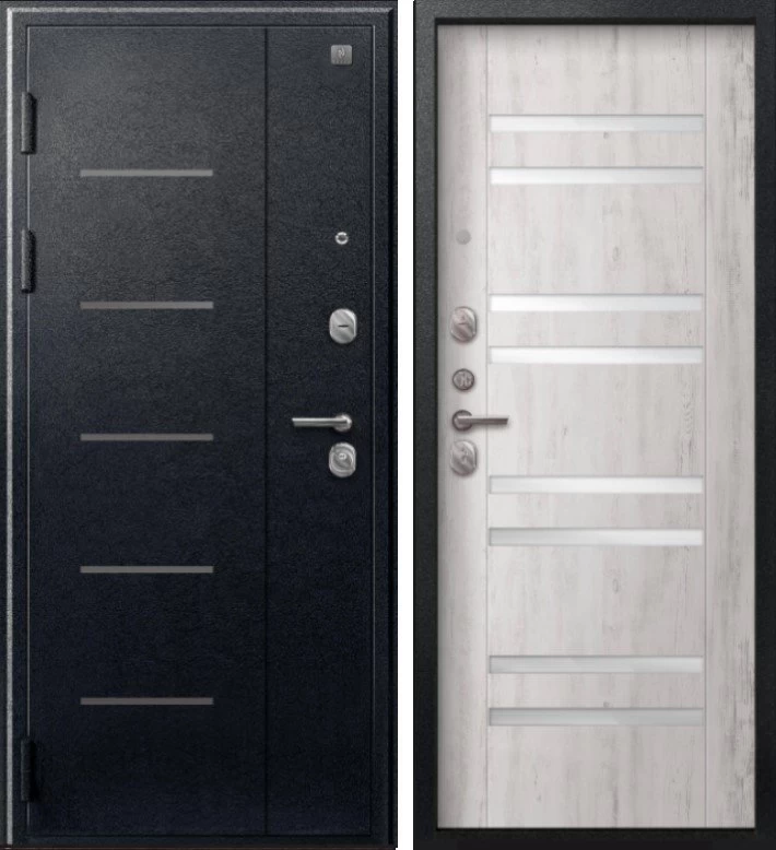 Надежная входная Дверь V-07 Черный муар - Дуб пепельный премиум класса по цене 43 967 руб. Большая толщина стали защитит от проникновения в ваш дом, квартиру или коттедж. Используется очень качественная фурнитура: замки, цилиндры, ручки, защелки. Покрытие и отделка двери изготовлено под внимательным контролем производителя. Дверь имеет долгий срок службы и гарантию.